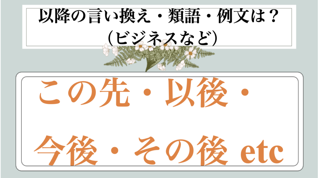 まとめ 以降の類語|ビジネス|言い換え|丁寧な言い方|優しい言い方|敬語)【目上や上司や部下など】