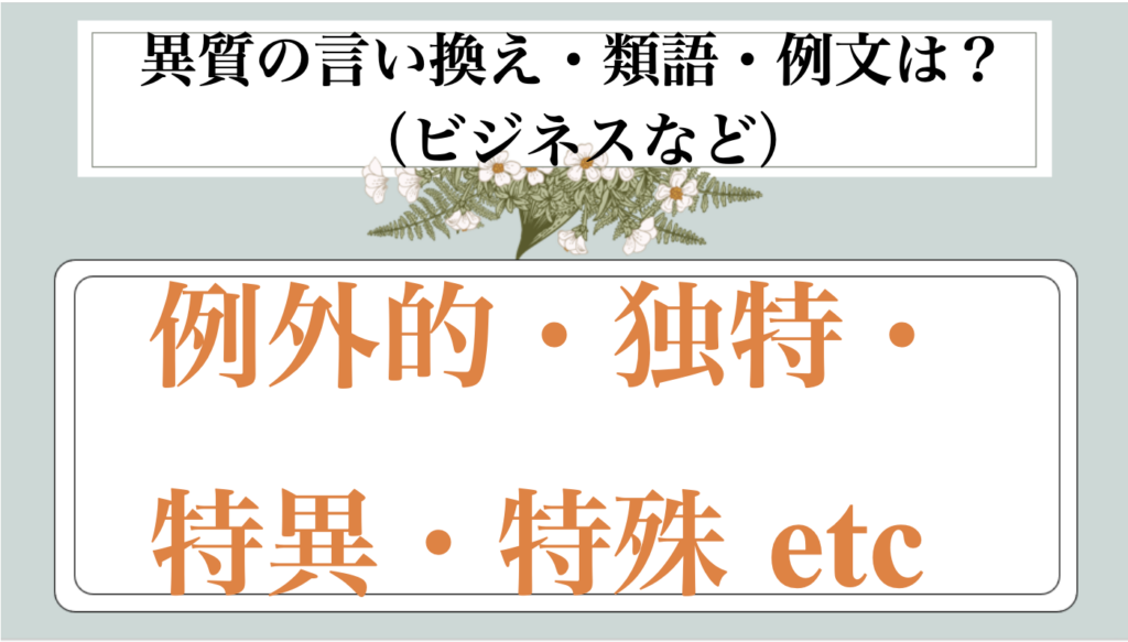 この記事では、異質|別の言い方に言い換え(ビジネス|別の言い方|例文|丁寧なメール|敬語)【目上や上司や部下など】について解説していきます。