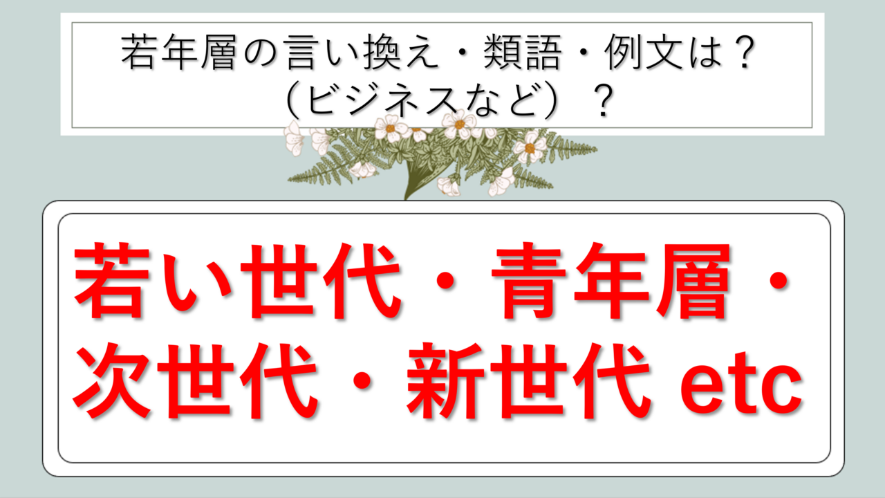 この記事では、若年層|別の言い方に言い換え(ビジネス|別の言い方|例文|丁寧なメール|敬語)【目上や上司や部下など】について解説していきます。