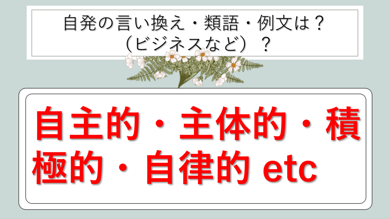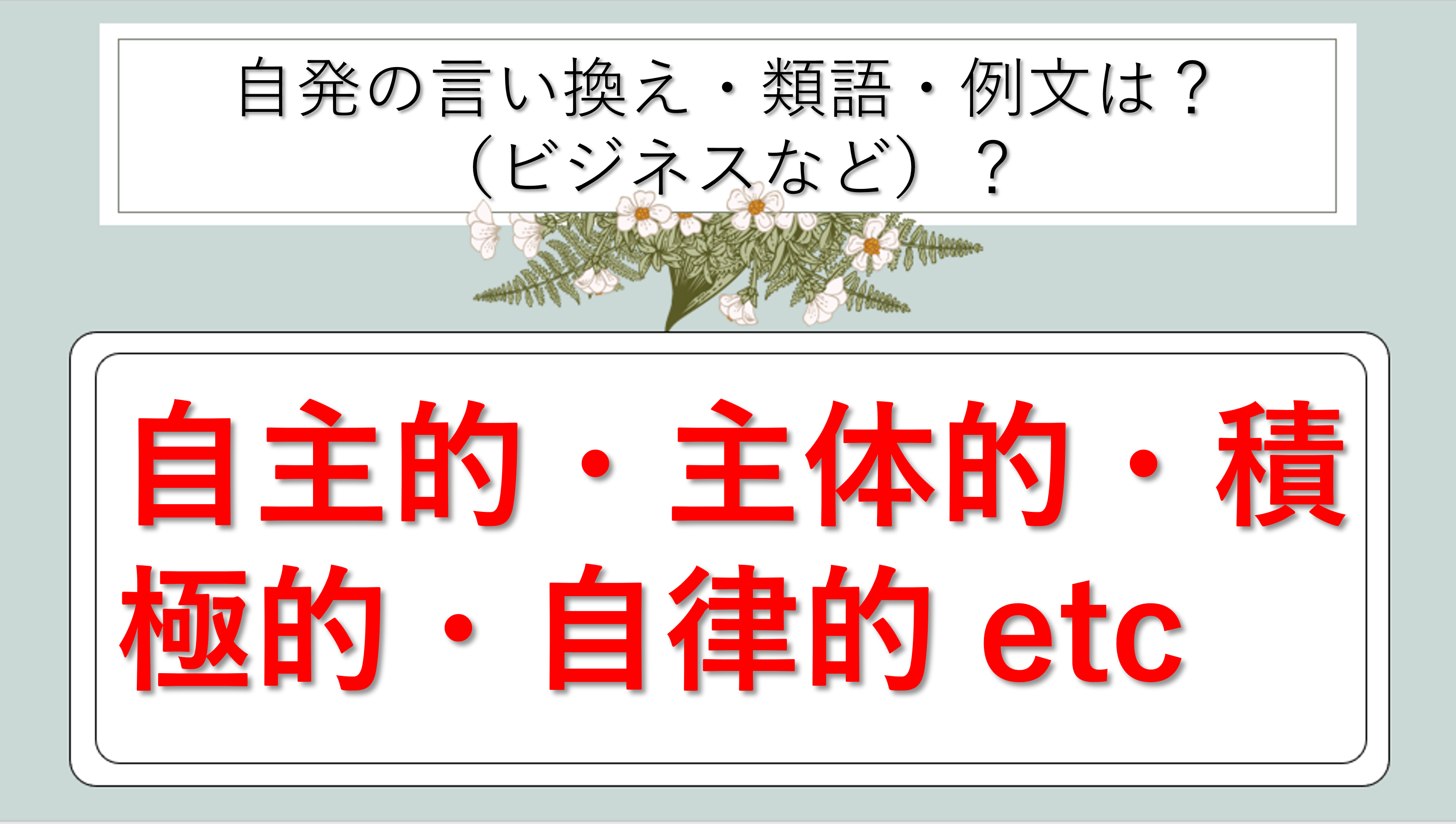 この記事では、「自発」を別の言葉に言い換える方法を、ビジネスシーンと日常会話の両方で使える例文とともに解説しました。
