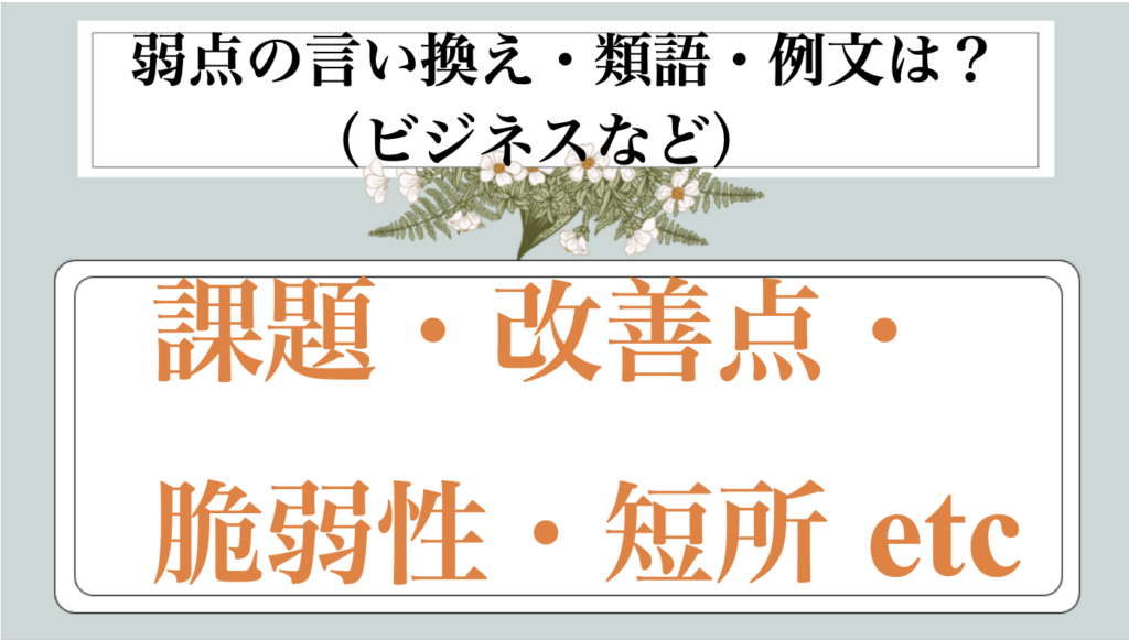 まとめ 弱点の類語|ビジネス|言い換え|丁寧な言い方|優しい言い方|敬語)【目上や上司や部下など】