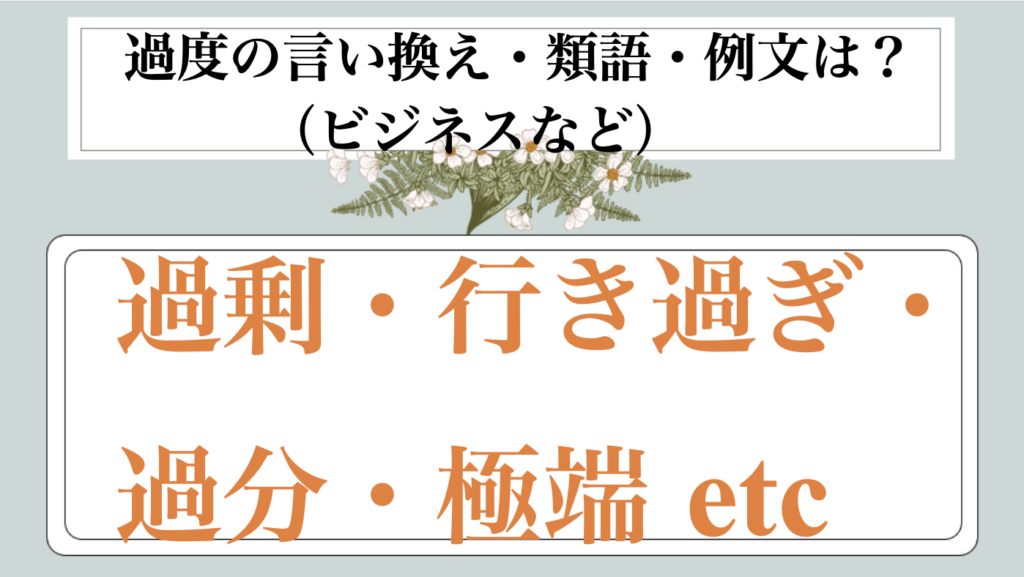 まとめ 過度の類語|ビジネス|言い換え|丁寧な言い方|優しい言い方|敬語)【目上や上司や部下など】