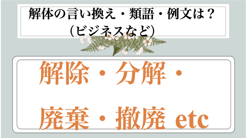 まとめ 解体の類語|ビジネス|言い換え|丁寧な言い方|優しい言い方|敬語)【目上や上司や部下など】