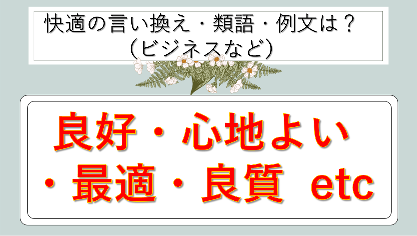まとめ 快適の類語|ビジネス|言い換え|丁寧な言い方|優しい言い方|敬語)【目上や上司や部下など】