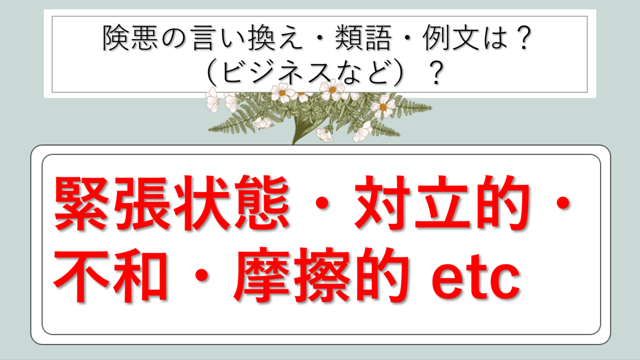 まとめ 険悪の類語|ビジネス|言い換え|丁寧な言い方|優しい言い方|敬語)【目上や上司や部下など】