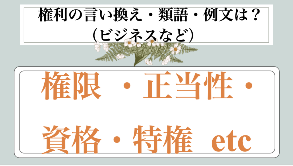 まとめ 権利の類語|ビジネス|言い換え|丁寧な言い方|優しい言い方|敬語)【目上や上司や部下など】
