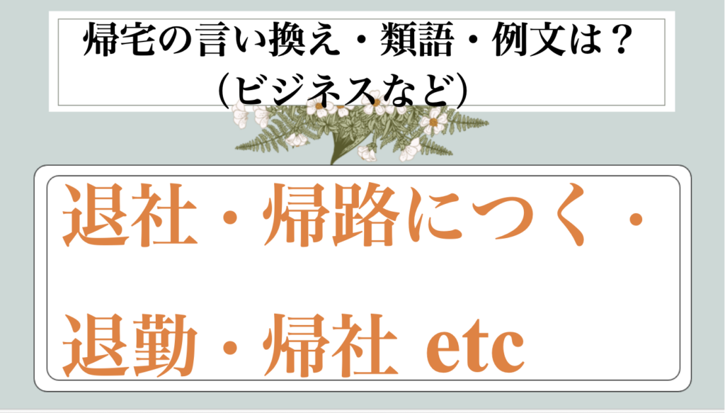まとめ 帰宅の類語|ビジネス|言い換え|丁寧な言い方|優しい言い方|敬語)【目上や上司や部下など】