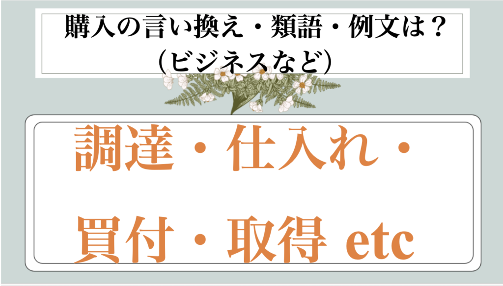 まとめ 購入の類語|ビジネス|言い換え|丁寧な言い方|優しい言い方|敬語)【目上や上司や部下など】