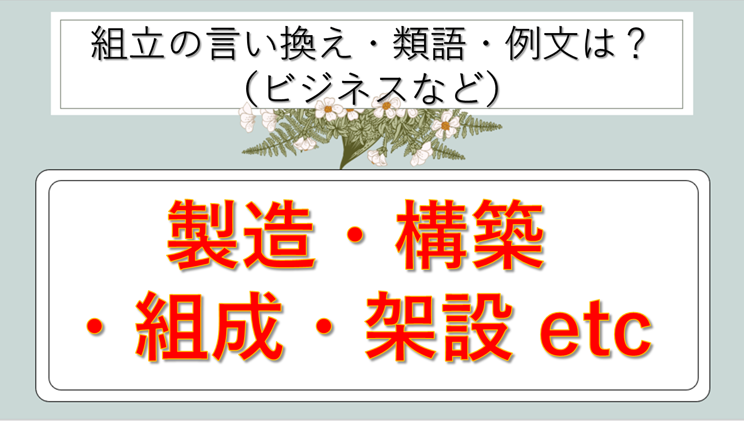 まとめ 組立の類語|ビジネス|言い換え|丁寧な言い方|優しい言い方|敬語)【目上や上司や部下など】