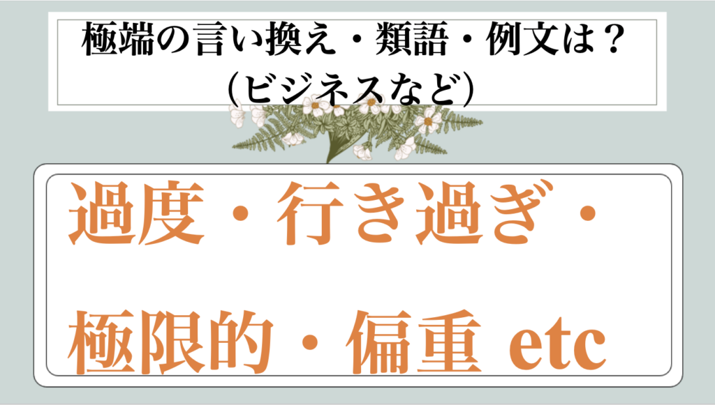 まとめ 極端の類語|ビジネス|言い換え|丁寧な言い方|優しい言い方|敬語)【目上や上司や部下など】