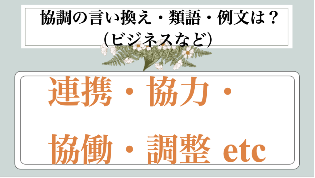 まとめ 協調の類語|ビジネス|言い換え|丁寧な言い方|優しい言い方|敬語)【目上や上司や部下など】