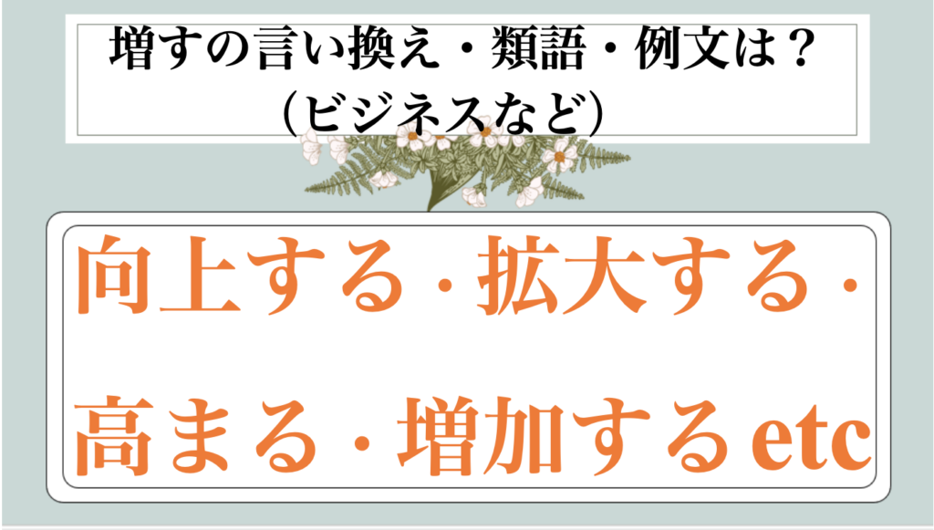 まとめ 増すの類語|ビジネス|言い換え|丁寧な言い方|優しい言い方|敬語)【目上や上司や部下など】