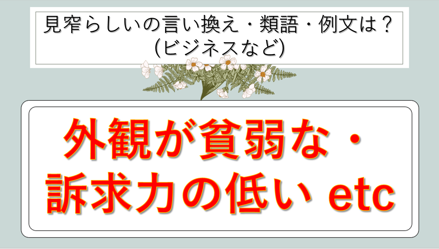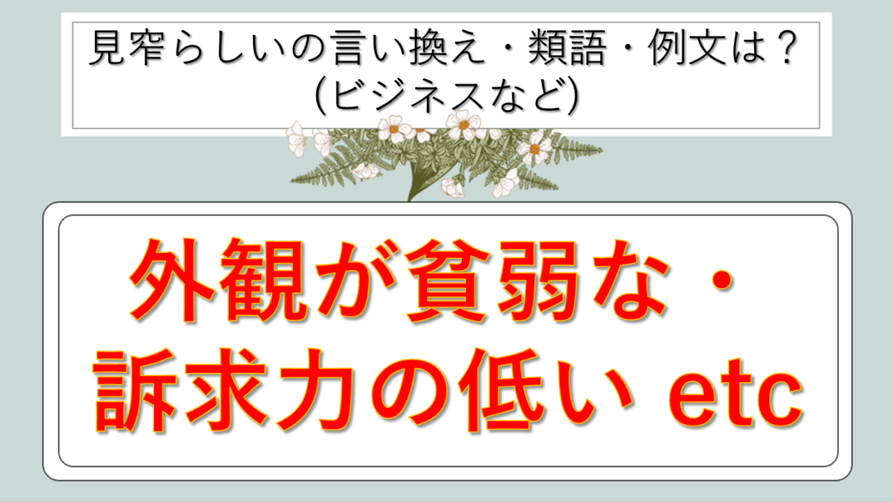 まとめ 見窄らしいの類語|ビジネス|言い換え|丁寧な言い方|優しい言い方|敬語)【目上や上司や部下など】