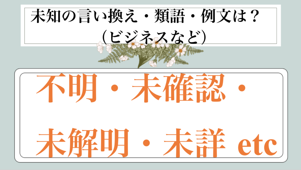 この記事では、「未知」を別の言葉に言い換える方法を、ビジネスシーンと日常会話の両方で使える例文とともに解説しました。