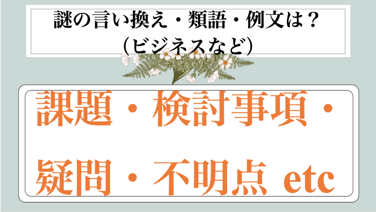 この記事では、「謎」を別の言葉に言い換える方法を、ビジネスシーンと日常会話の両方で使える例文とともに解説しました。