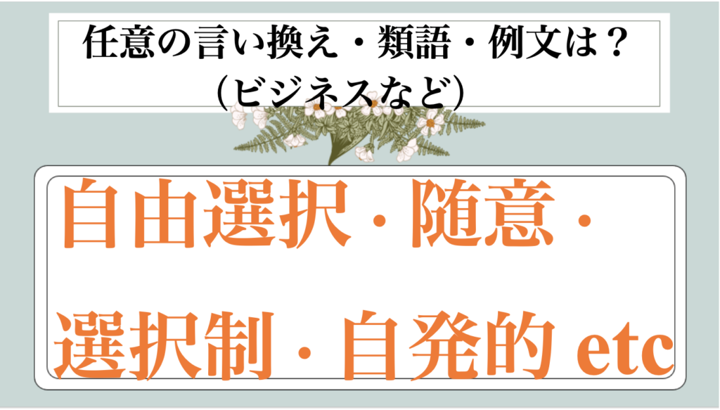 この記事では、任意|別の言い方に言い換え(ビジネス|別の言い方|例文|丁寧なメール|敬語)【目上や上司や部下など】について解説していきます。
