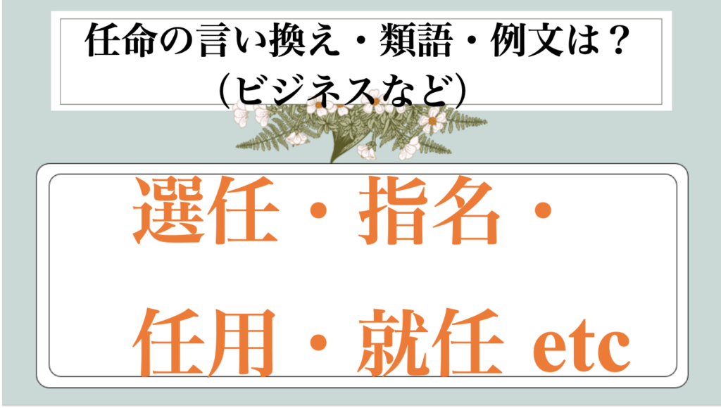まとめ 任命の類語|ビジネス|言い換え|丁寧な言い方|優しい言い方|敬語)【目上や上司や部下など】