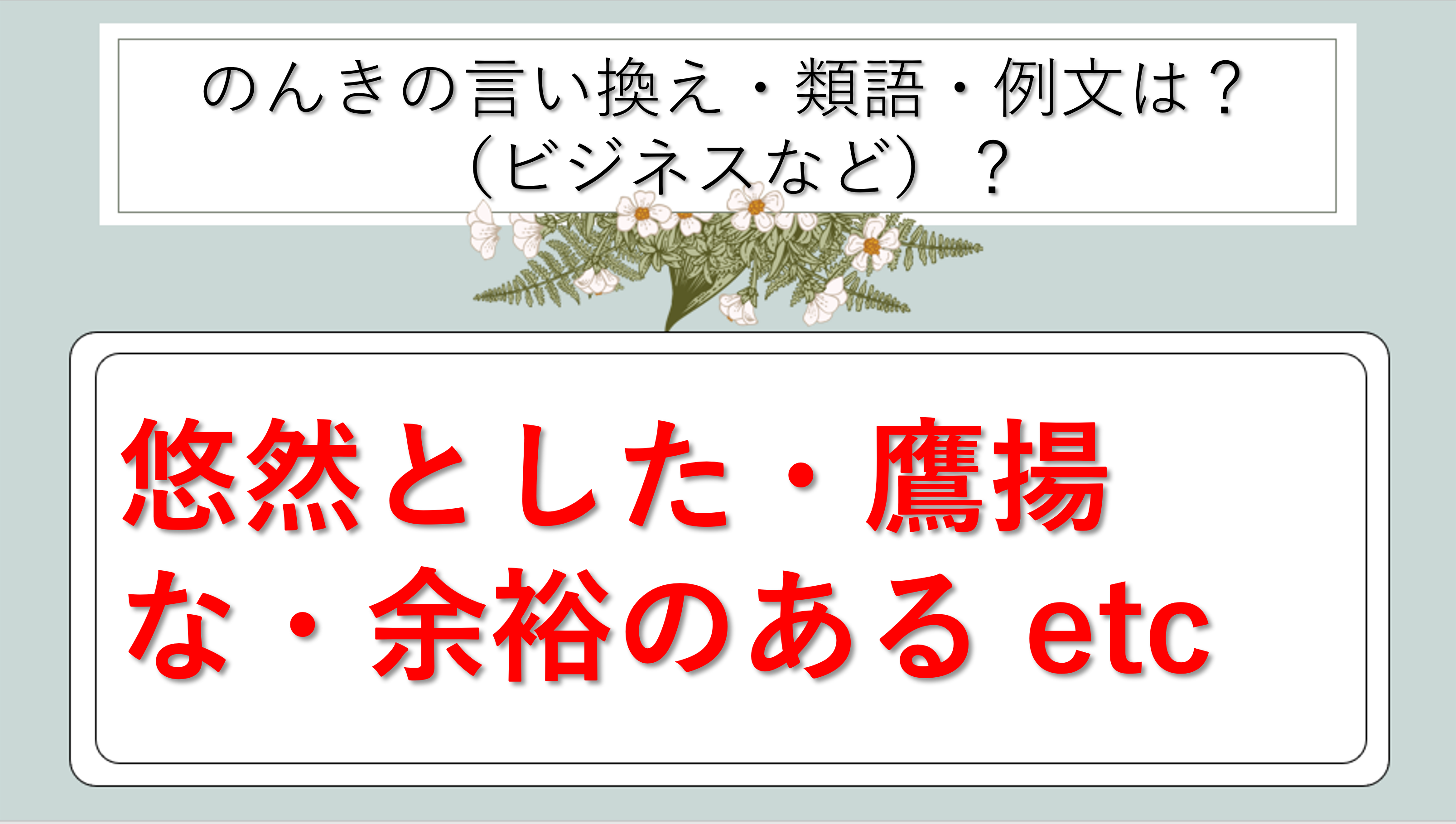 この記事では、のんき|別の言い方に言い換え(ビジネス|別の言い方|例文|丁寧なメール|敬語)【目上や上司や部下など】について解説していきます。