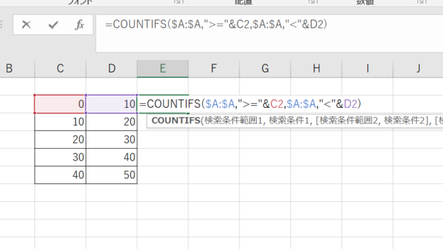 なお、COUNTIF関数の使用方法として=(数値範囲,条件)と入力する必要があり、具体的に条件の部分に“<>0”と入力します。