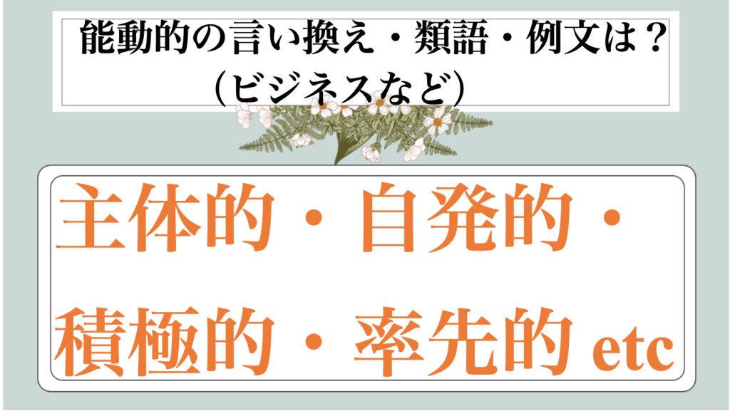 まとめ 能動的の類語|ビジネス|言い換え|丁寧な言い方|優しい言い方|敬語)【目上や上司や部下など】