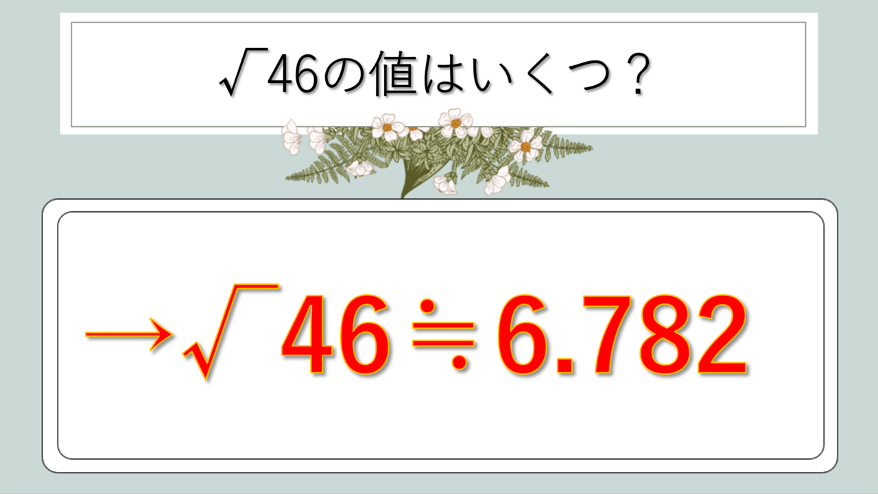 後述しますが、46という数の因数分解の性質により、ルート46はこれ以上簡単な形には変形できないため、小数値または√46という形で扱うことになります。