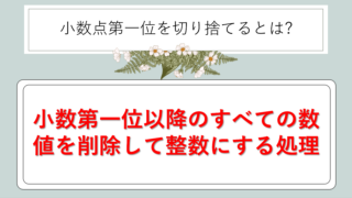 この処理を行うことで、結果として小数点以下がすべて消え、整数のみが残ります。日常生活では人数や個数など、整数でしか表現できないものを扱う際によく使われるでしょう。
