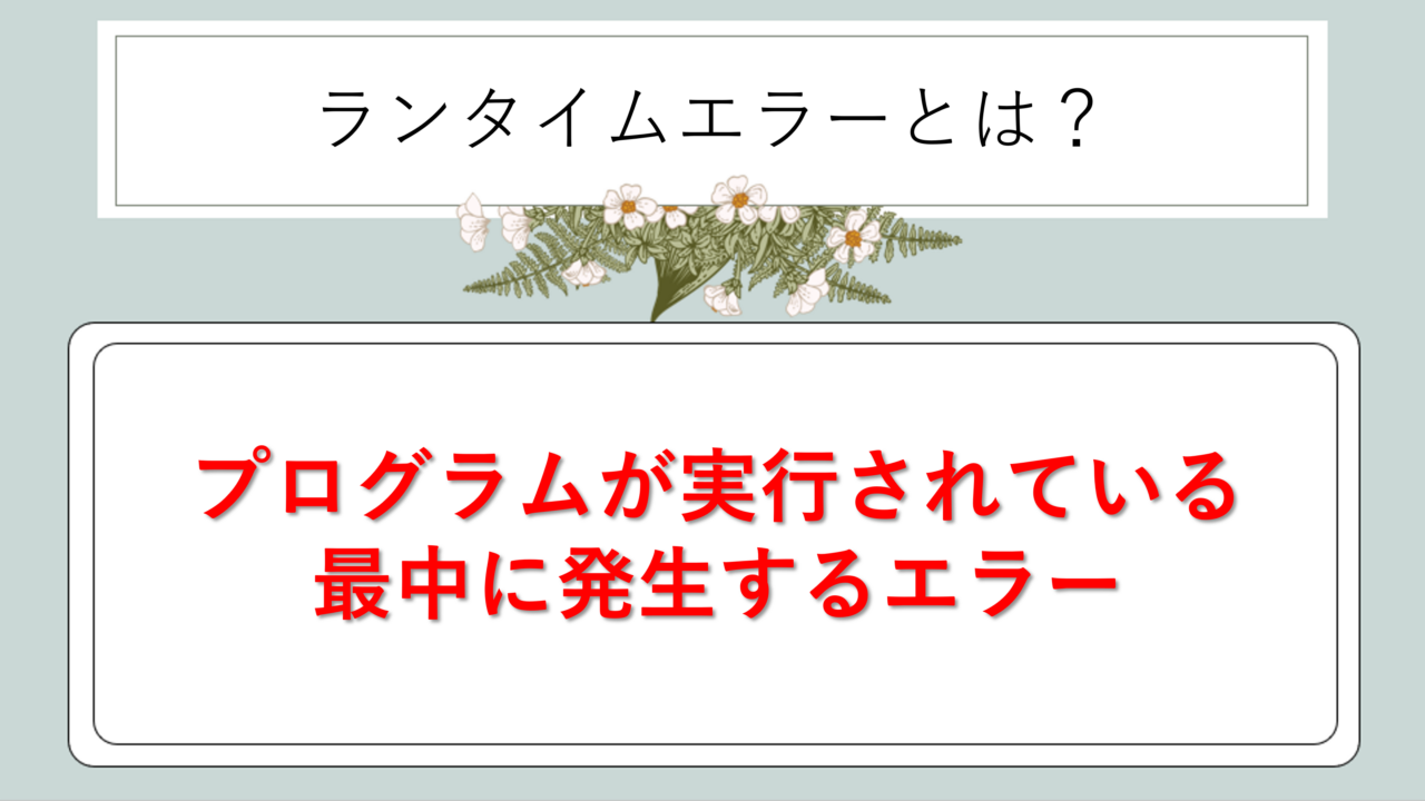 それではまず、ランタイムエラーとは何かという定義と全体像について解説していきます。