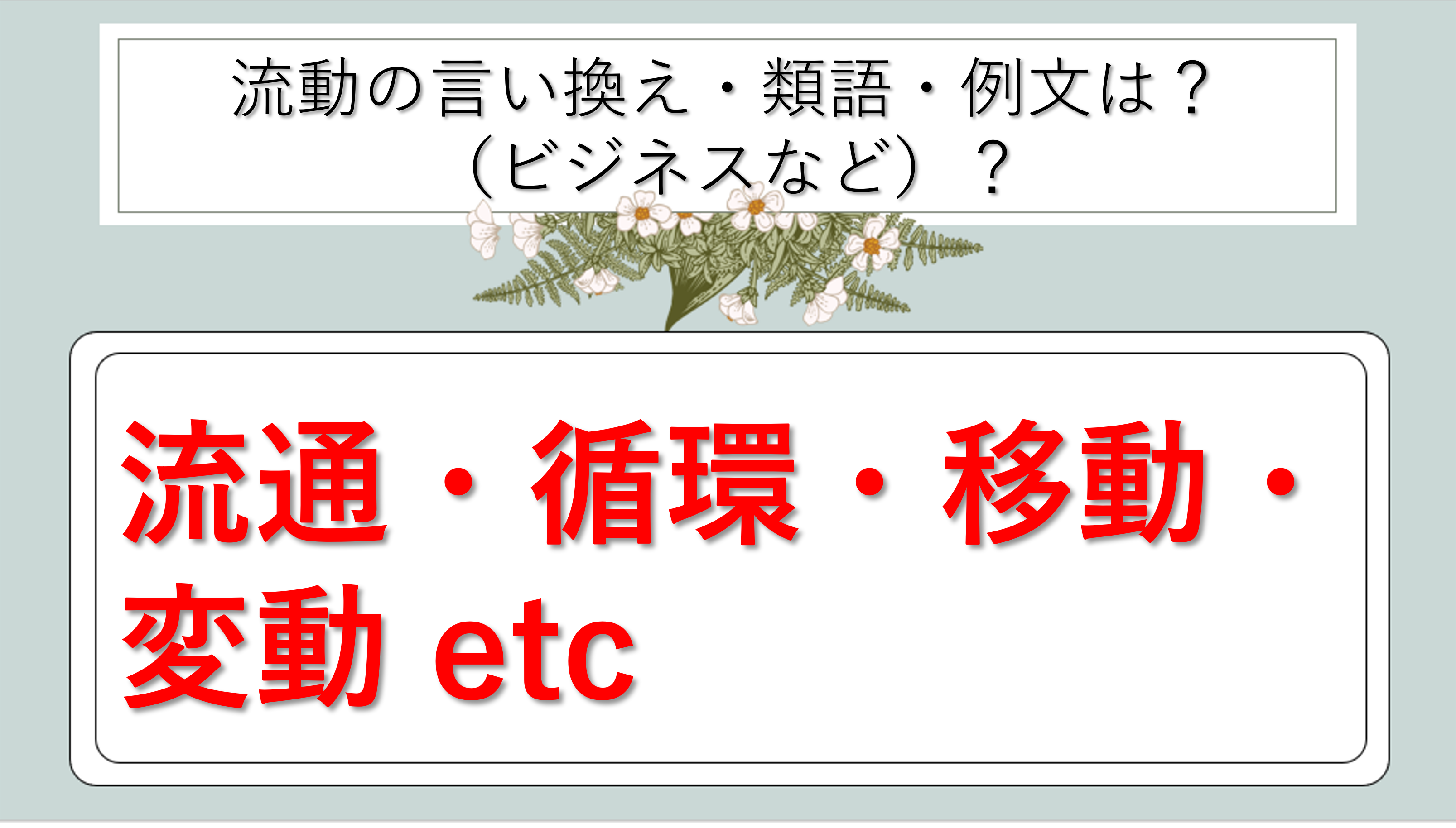 まとめ 流動の類語|ビジネス|言い換え|丁寧な言い方|優しい言い方|敬語)【目上や上司や部下など】