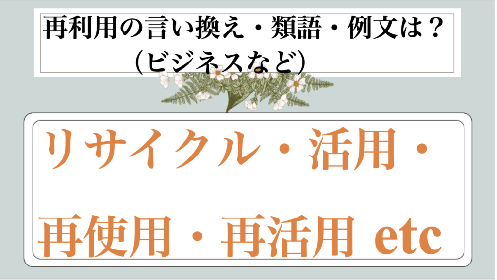 まとめ 再利用の類語|ビジネス|言い換え|丁寧な言い方|優しい言い方|敬語)【目上や上司や部下など】