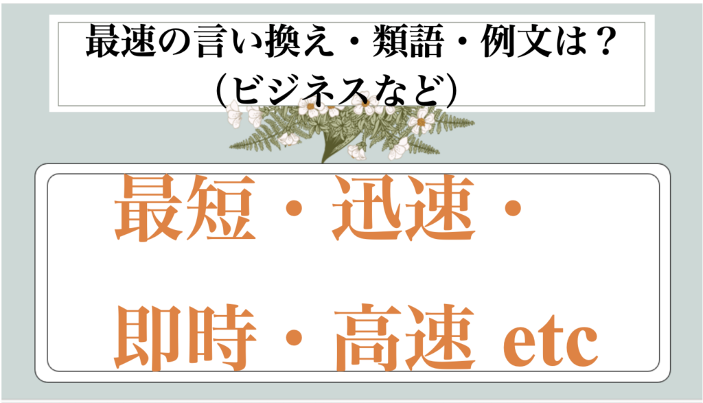 最速|別の言い方に言い換えた例文!丁寧な言い方