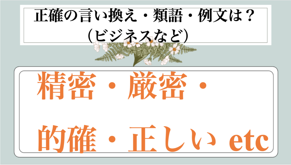 まとめ 正確の類語|ビジネス|言い換え|丁寧な言い方|優しい言い方|敬語)【目上や上司や部下など】