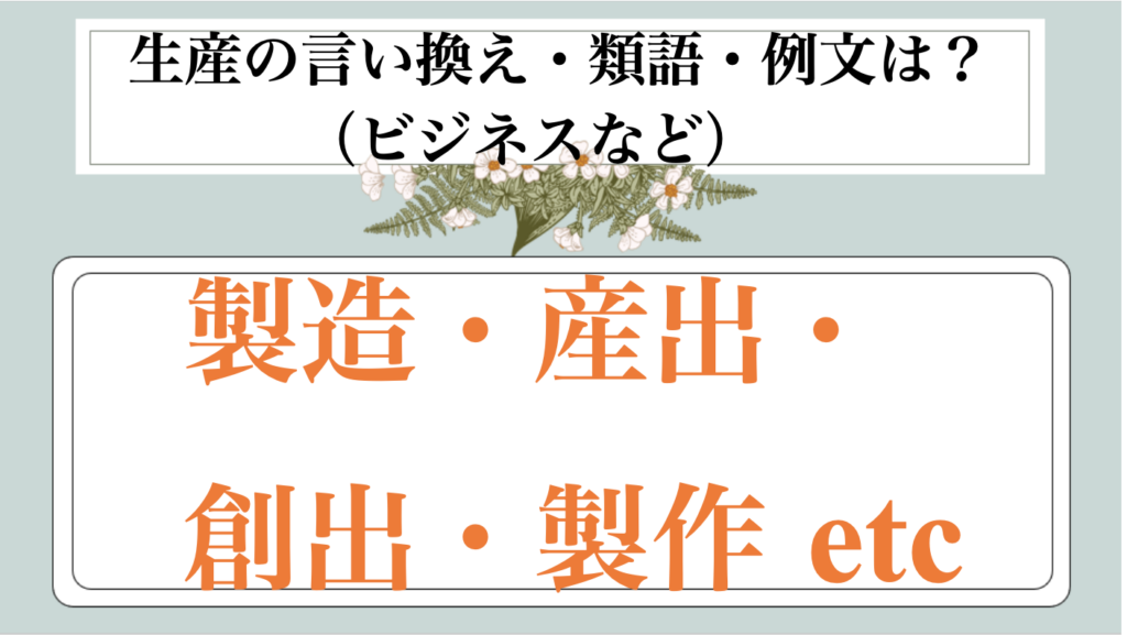 まとめ 生産の類語|ビジネス|言い換え|丁寧な言い方|優しい言い方|敬語)【目上や上司や部下など】