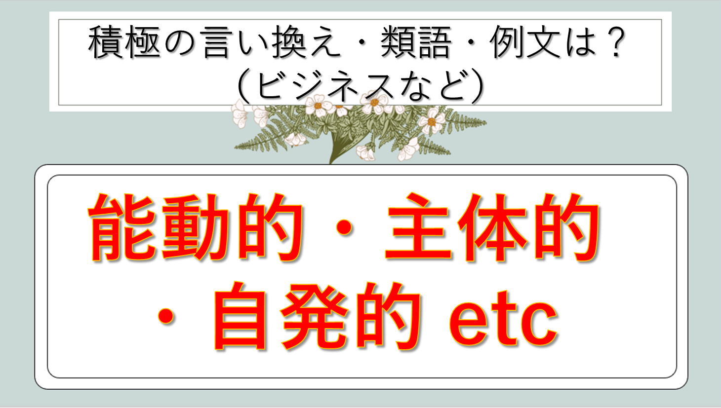まとめ 積極の類語|ビジネス|言い換え|丁寧な言い方|優しい言い方|敬語)【目上や上司や部下など】