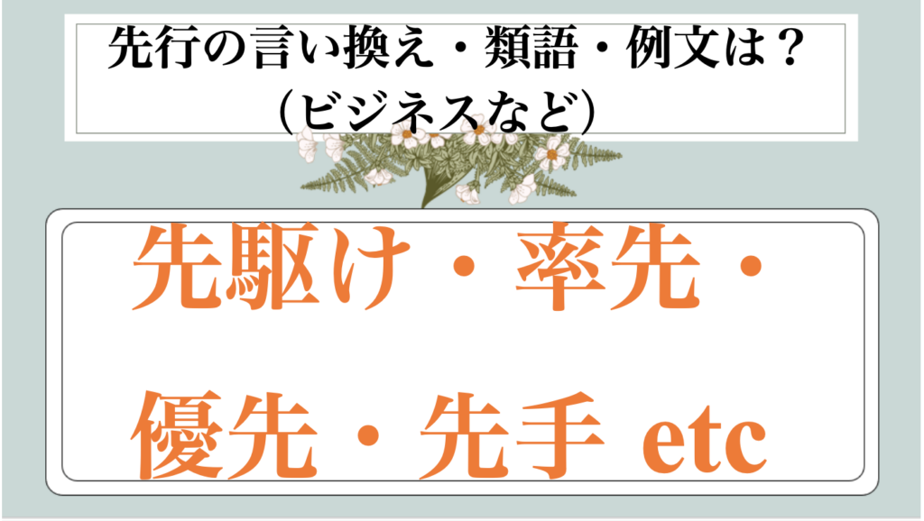 まとめ 先行の類語|ビジネス|言い換え|丁寧な言い方|優しい言い方|敬語)【目上や上司や部下など】