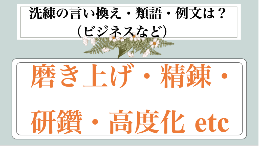 まとめ 洗練の類語|ビジネス|言い換え|丁寧な言い方|優しい言い方|敬語)【目上や上司や部下など】