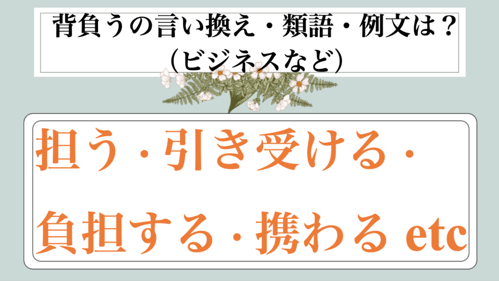 この記事では、「背負う」を別の言葉に言い換える方法を、ビジネスシーンと日常会話の両方で使える例文とともに解説しました。