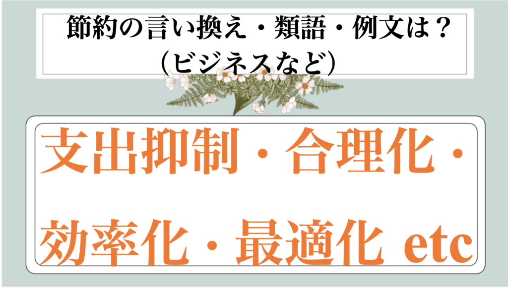 節約|言い換え|ビジネス|丁寧な言い方|柔らかい言い方|かっこいい|例文|メール|敬語)【目上や上司や部下など】