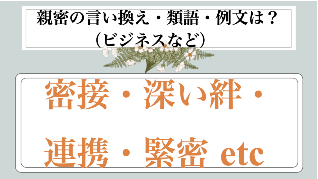 まとめ 親密の類語|ビジネス|言い換え|丁寧な言い方|優しい言い方|敬語)【目上や上司や部下など】