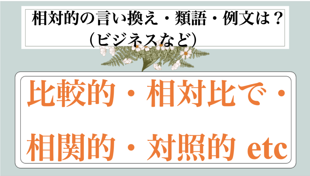 まとめ 相対的の類語|ビジネス|言い換え|丁寧な言い方|優しい言い方|敬語)【目上や上司や部下など】
