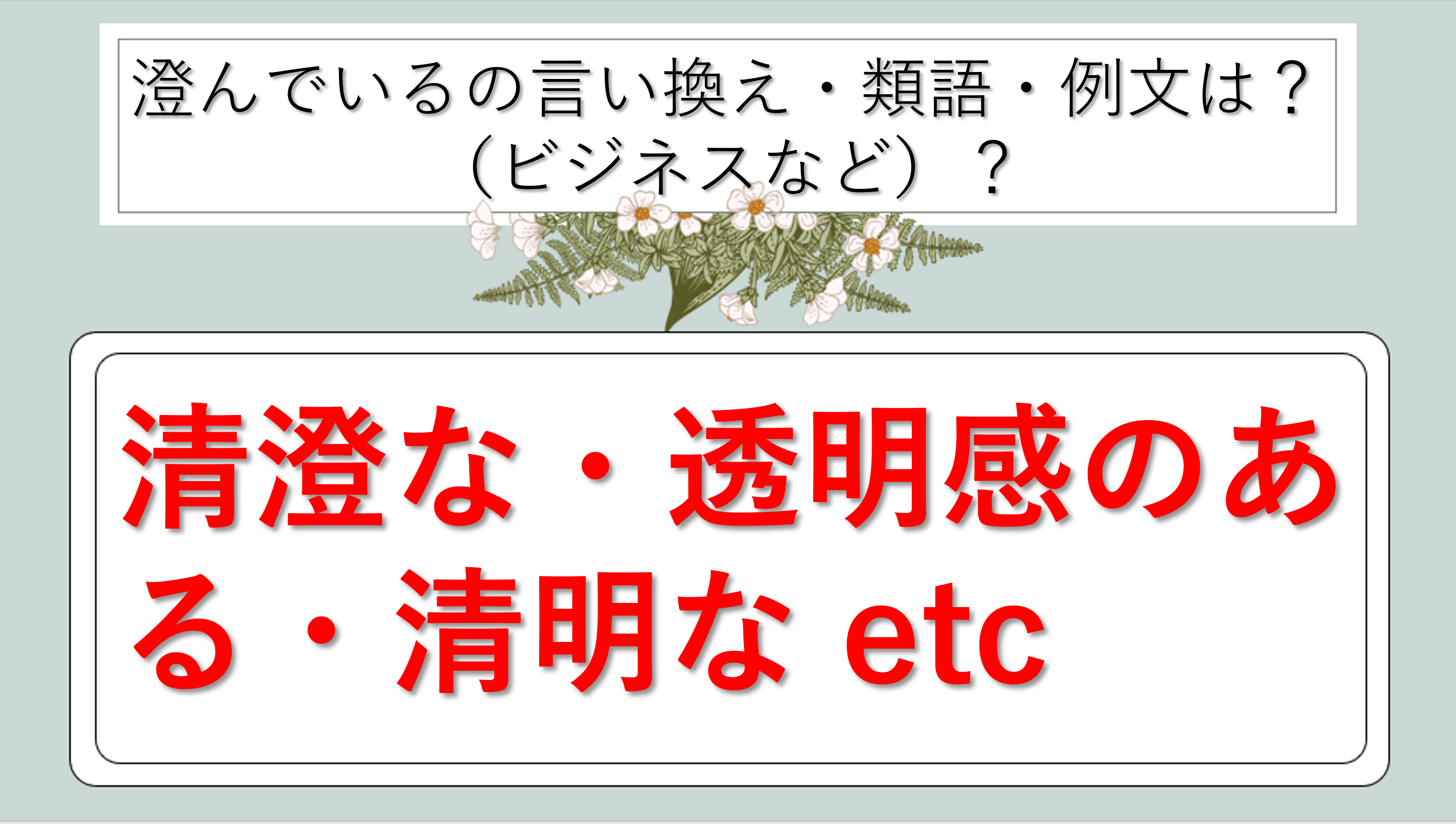まとめ 澄んでいるの類語|ビジネス|言い換え|丁寧な言い方|優しい言い方|敬語)【目上や上司や部下など】