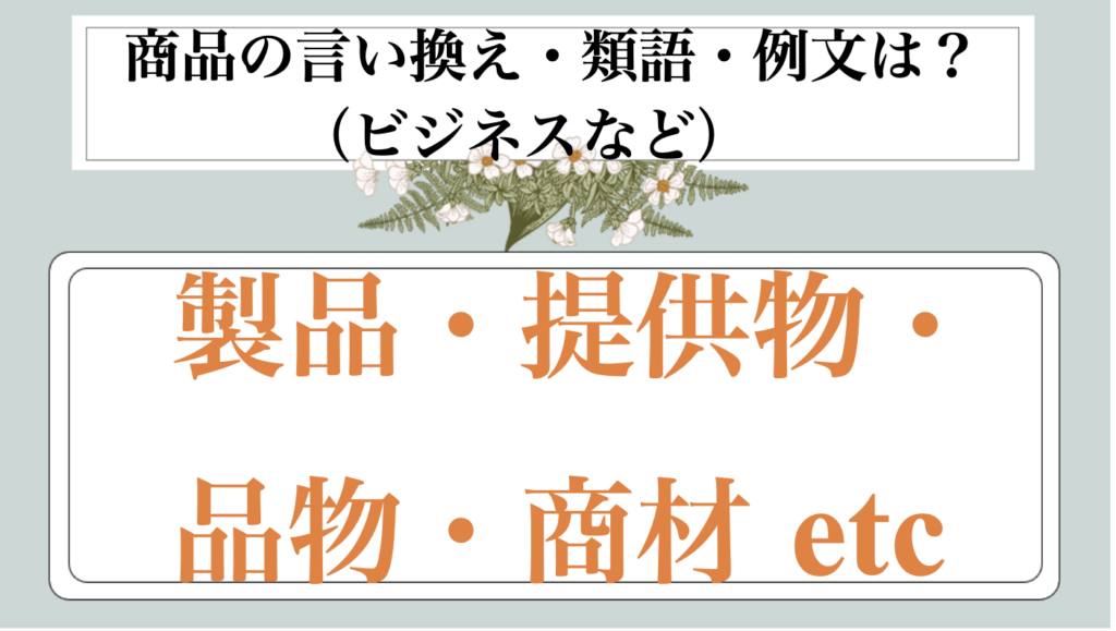 まとめ 商品の類語|ビジネス|言い換え|丁寧な言い方|優しい言い方|敬語)【目上や上司や部下など】