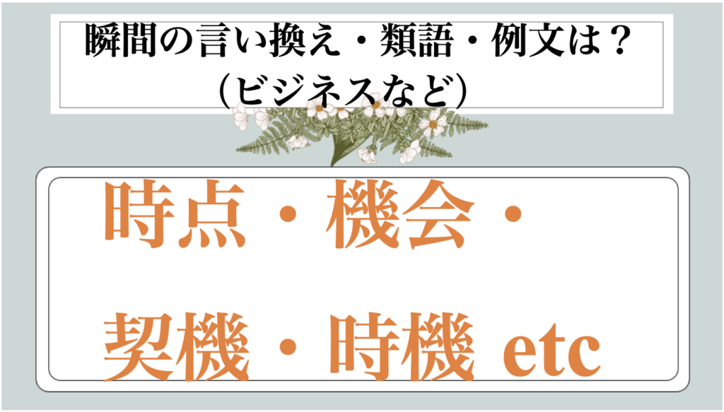 まとめ 瞬間の類語|ビジネス|言い換え|丁寧な言い方|優しい言い方|敬語)【目上や上司や部下など】