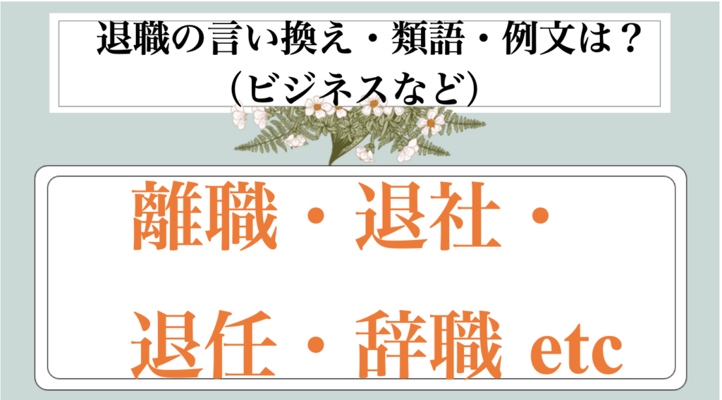 まとめ 退職の類語|ビジネス|言い換え|丁寧な言い方|優しい言い方|敬語)【目上や上司や部下など】