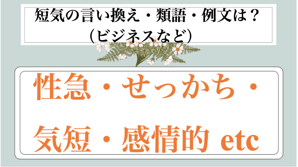 まとめ 短気の類語|ビジネス|言い換え|丁寧な言い方|優しい言い方|敬語)【目上や上司や部下など】