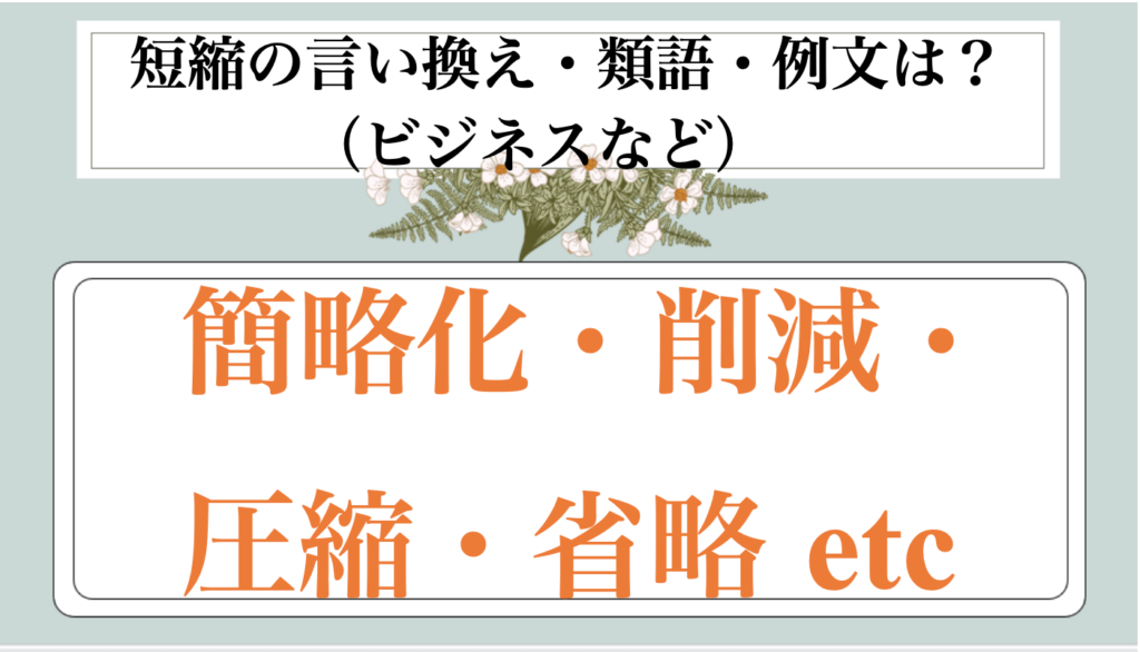 まとめ 短縮の類語|ビジネス|言い換え|丁寧な言い方|優しい言い方|敬語)【目上や上司や部下など】