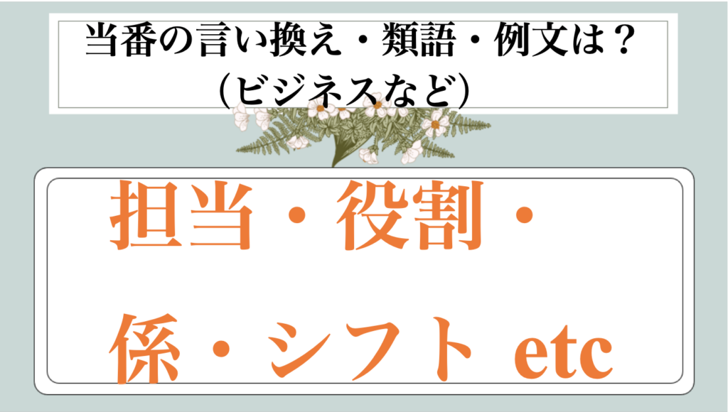 まとめ 当番の類語|ビジネス|言い換え|丁寧な言い方|優しい言い方|敬語)【目上や上司や部下など】