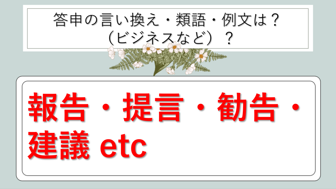 まとめ 答申の類語|ビジネス|言い換え|丁寧な言い方|優しい言い方|敬語)【目上や上司や部下など】