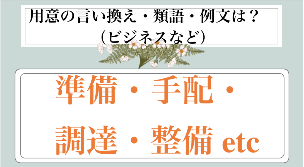 まとめ 用意の類語|ビジネス|言い換え|丁寧な言い方|優しい言い方|敬語)【目上や上司や部下など】