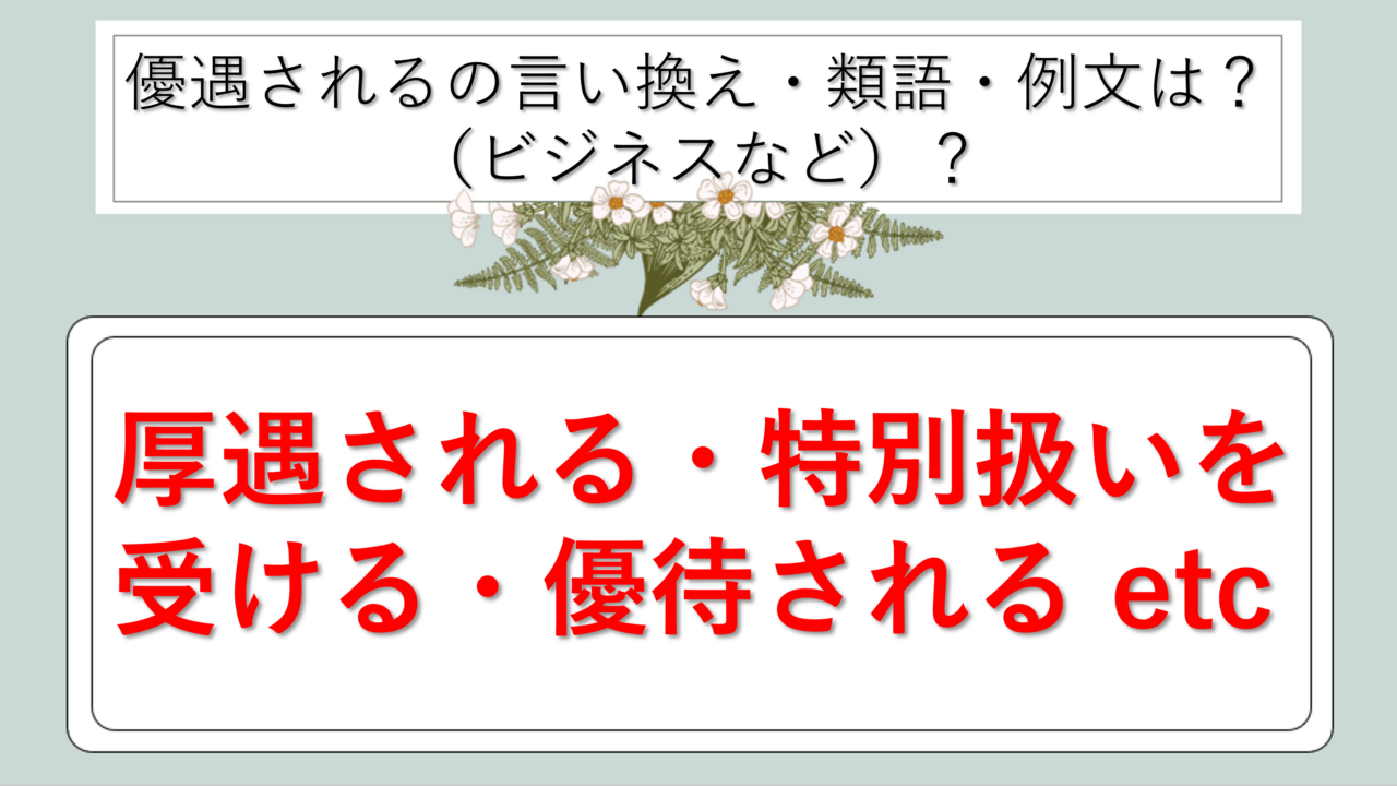 まとめ 優遇されるの類語|ビジネス|言い換え|丁寧な言い方|優しい言い方|敬語)【目上や上司や部下など】